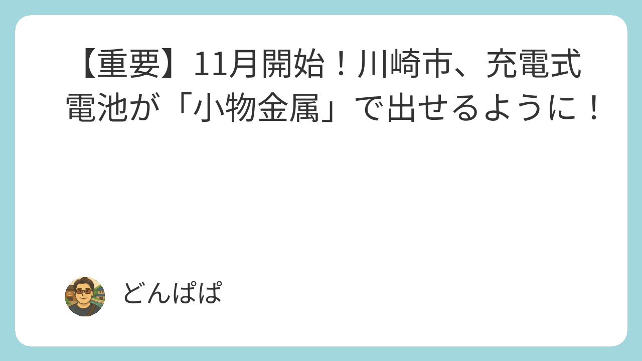 🔋 11月開始!川崎市、充電式電池が「小物金属」で出せるように!